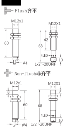 Thread size / 螺纹尺寸:  M12 屏蔽式 / M12 非屏蔽式