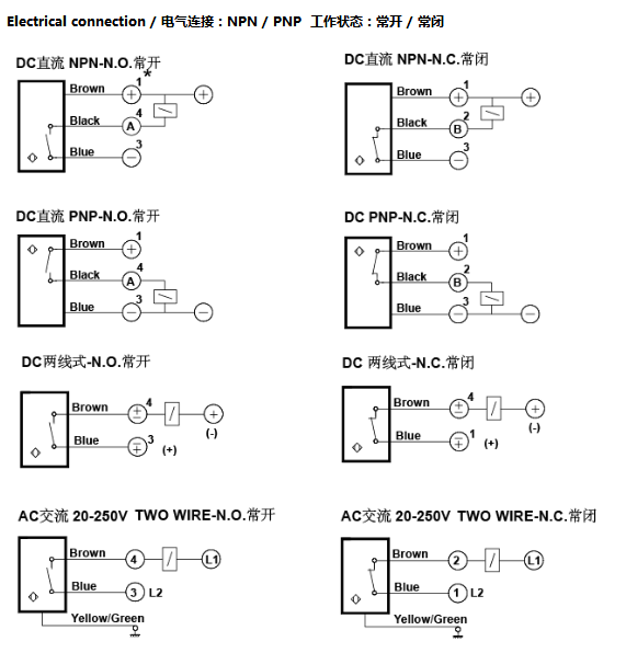 | Sn / 检测离距: (非屏蔽式) | 标准Sn=4mm 长距Sn=8mm 超长Sn=10mm | ||